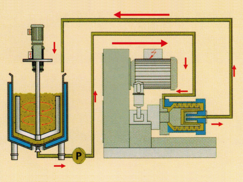 ![]() 循環(huán)操作只需一個或兩個攪拌桶實現(xiàn)循環(huán)砂磨,而且攪拌桶內(nèi)粗顆粒會快速沉淀而優(yōu)科學(xué)入砂磨腔砂磨。 |